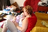 2005 09 05 guest Mom hiding behind Doods.JPG
